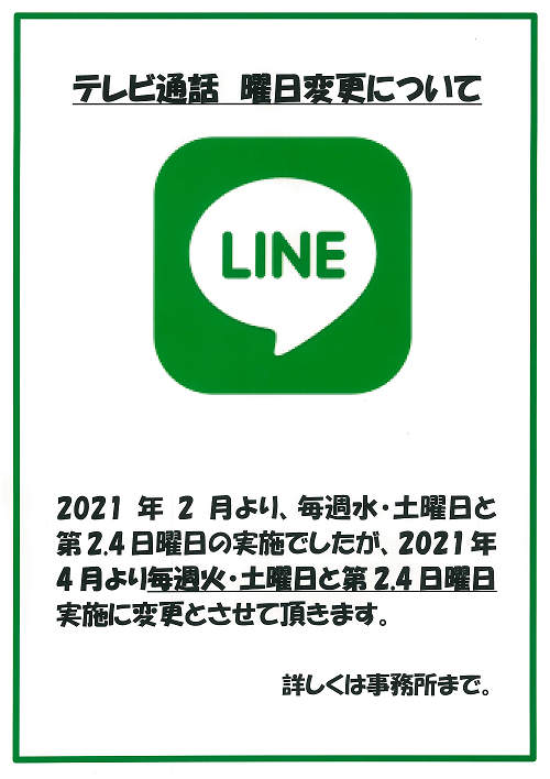 2021年4月より、 毎週 火・土 曜日と 第2.4 日曜日の実施に変更とさせていただきます。